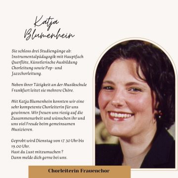 Katja Blumenhein übernimmt unseren Frauenchor ab 19.8.