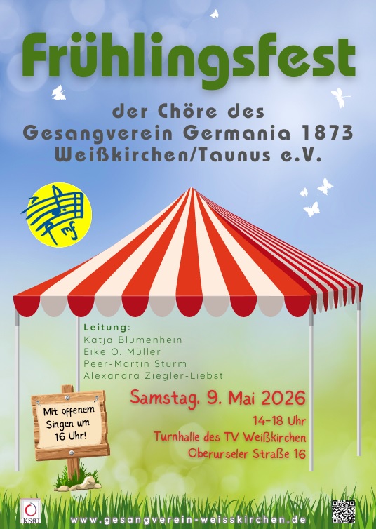 Verbringen Sie am 9.5. einen fröhlichen Frühlingstag mit den Chören des Gesangvereins Germania Weißkirchen und feiern Sie mit uns.
