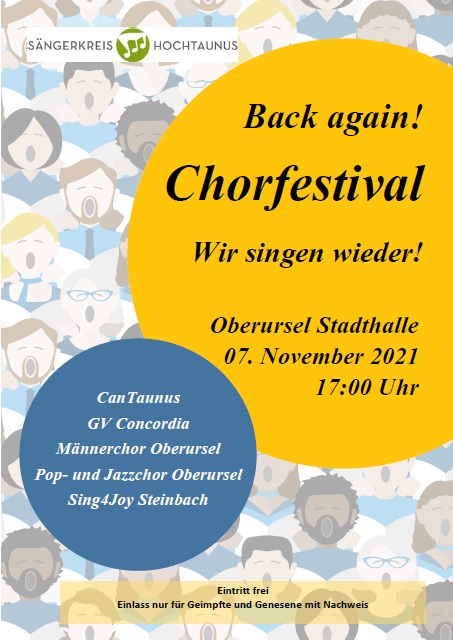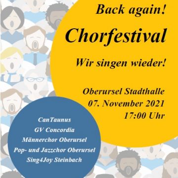 Chorfestival am 7.11. um 17 Uhr mit 5 Chören in der Stadthalle Oberursel organisiert vom Sängerkreis Hochtaunus,