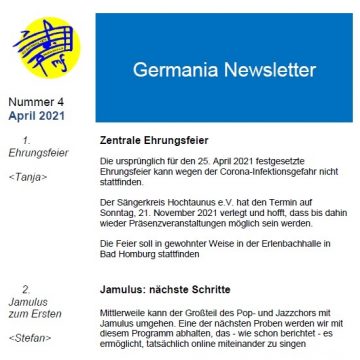 Der vierte Germania Newletter steht für euch bereit.